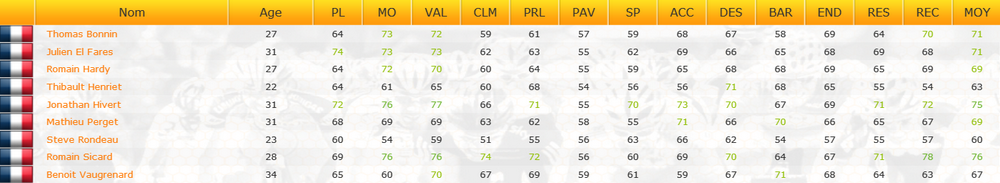 Je pense que tu dois revoir ta philosophie de recrutement car en plus Staric, au sommet de sa forme en 2014-2015 stagne en montagne (même si 83 c'est exceptionnel hein) et cogne contre Nibali qui avait le Tour d'Italie dans les jambes... De ce côté, je te conseille d'être patient en attendant une éventuelle régression de Nibali afin que tu enlèves ce Tour de France mais uniquement dans les cols car la note plaine/contre-la-montre voire même Endurance pour un concurrent à la victoire est limite.